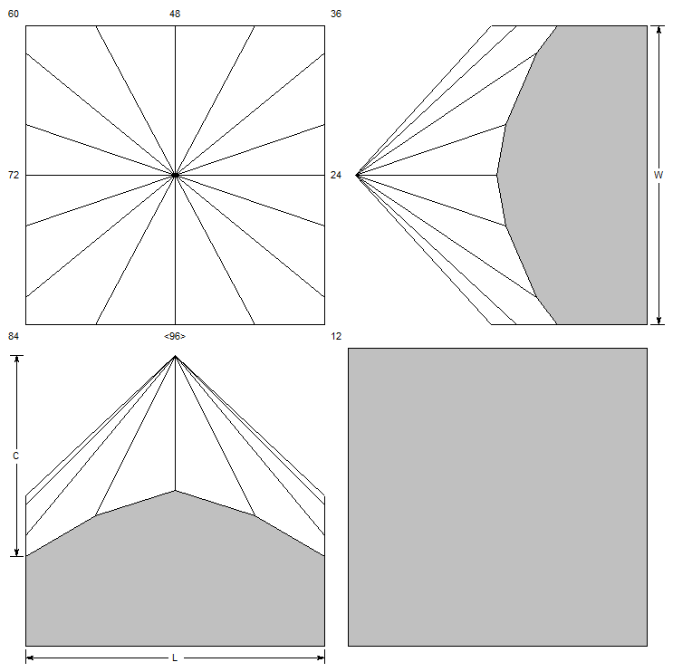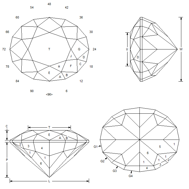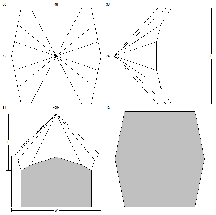 The very next step says “calibrate length”. It is a set of girdle facets cut on the 21 index, which leaves the gem looking like this (GemCAD).