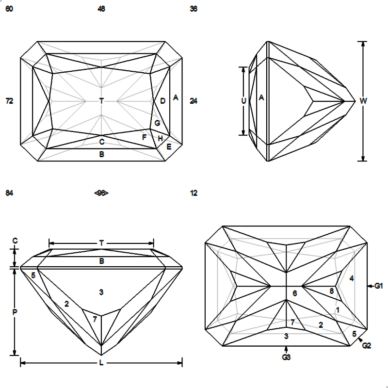 Radiant Rectangle faceting design using an OMNI-type preform. This is an intermediate to advanced level faceting design, so you’ll want very solid basic skills before tackling it.
