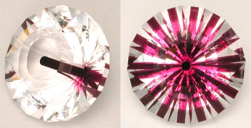 Using modern faceting equipment, we can most often manage color and inclusion most powerfully – and produce the most interesting finished pieces – with processes that begin in the pavilion and progress to the crown.