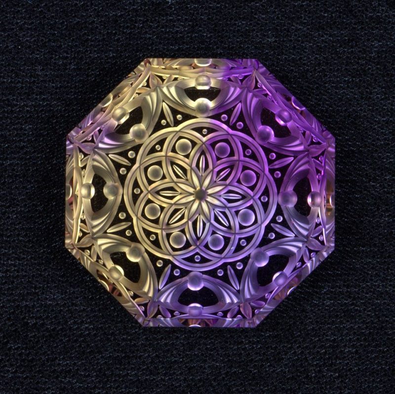 Dalan Hargrave’s Mandala series – Ametrine 43.24cts, 28mm Photo courtesy Dalan Hargrave