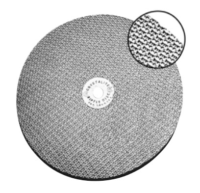 The fast cutting 100 mesh disc cuts like a 40 mesh and the 180 mesh disc cuts like a 60 mesh. It is excellent for rough cabbing and preforming large faceted stones. As the tips of the ripple forms wear, fresh diamond is exposed, permitting the disc to remain sharp throughout its long life. This disc will cut agate with ease.